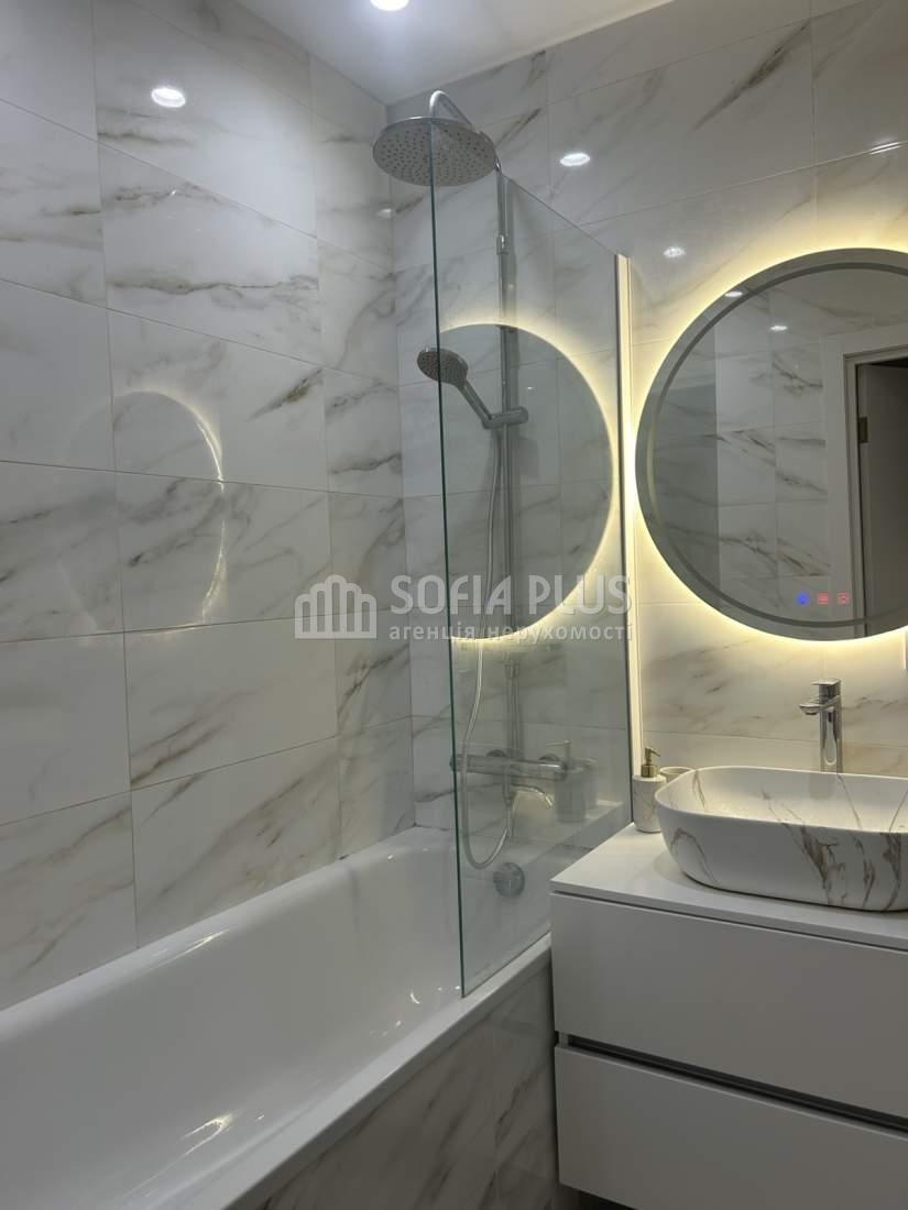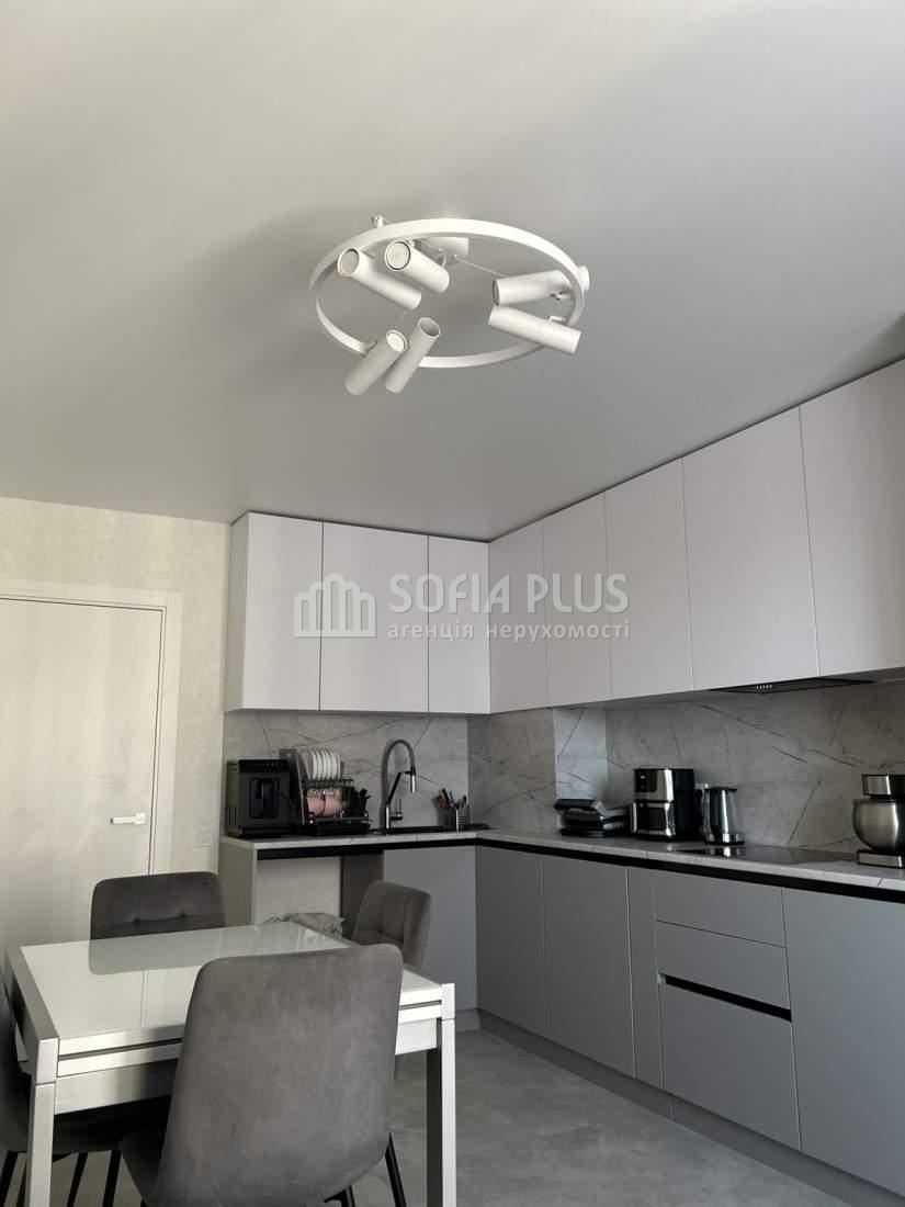 Продам 2-кімнатну квартиру на 8 поверсі 25-поверхового нового цегляного будинку в Оболонському районі на вулиці Коноплянська 22А (ЖК Навігатор-2). Площі: загальна - 74 кв.м., житлова - 42 кв.м, кухня - 18 кв.м. Дизайнерський ремонт. В кімнатах ламінат, на кухні, в коридорі і санвузлі плитка. 3 кондиціонери, бойлер. Лоджія засклена. Санвузол окремий. Тепла підлога. Встановлені лічильники тепла та електро (день, нічь). Замінена електрика з окремими автоматами на техніку. Квартира продається з меблями та побутовою технікою. Розвинена інфраструктура.